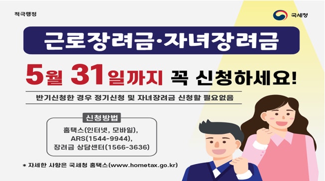 자녀 장려금 신청은 매년 5월 정기 신청 기간에 접수할 수 있으며, 이 시기를 놓치면 기한 후 신청(6~11월)으로 접수할 수 있습니다.